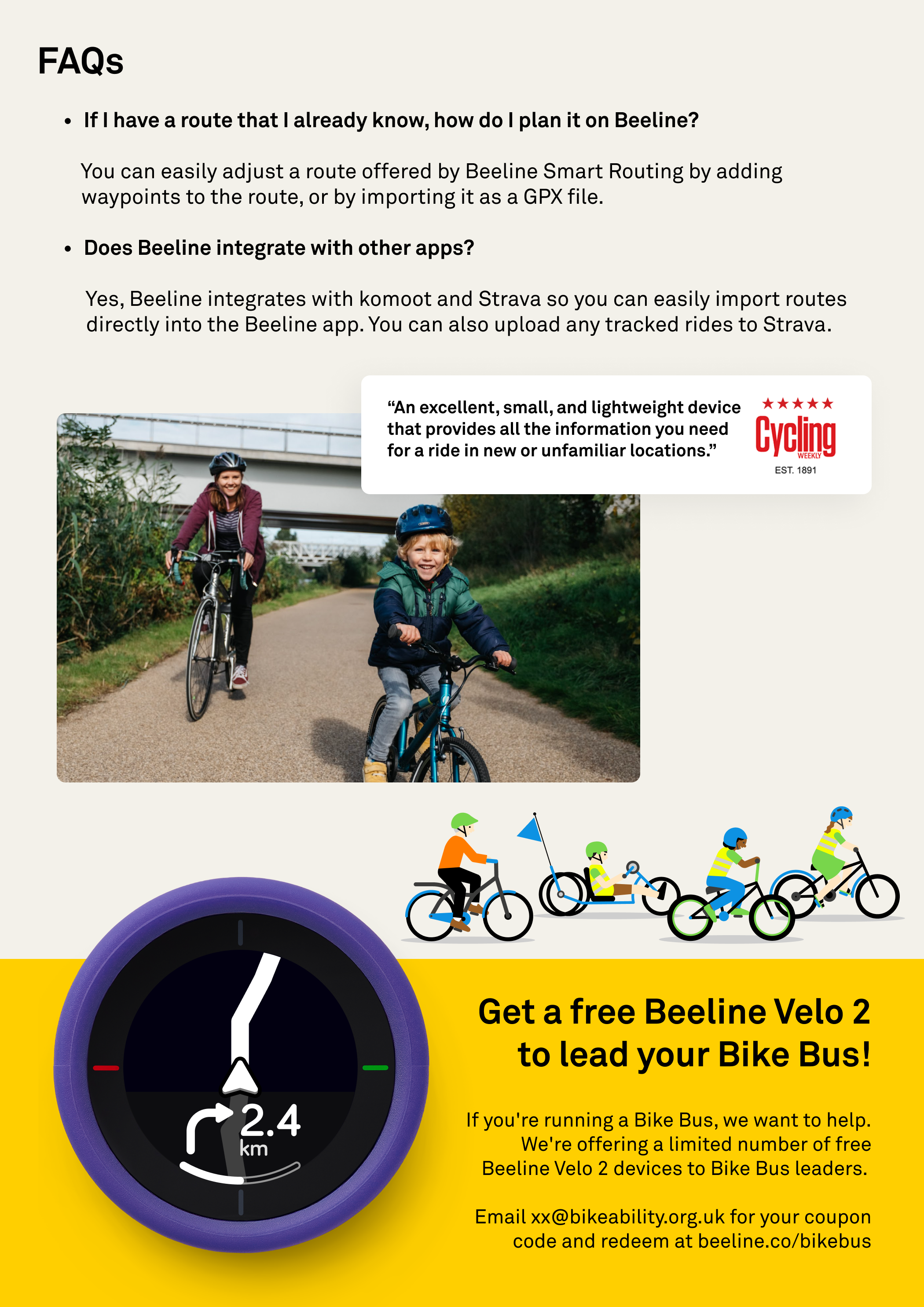 As part of the launch, Beeline is giving away a limited number of free Velo 2 devices to bike bus leaders across the UK.